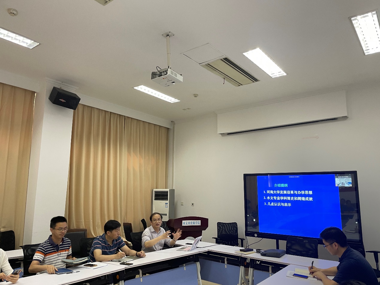在“水文专业学科发展简史及若干思考”讲座中,陈元芳教授介绍了河海大学历史、发展沿革及内设教学机构的变化过程,水文专业学科发展简史、标志性成果,水文专业在人才培养、科学研究等方面取得的成绩。他指出,作为水文专业的教师,应当有危机意识和一流意识,瞄准国家前沿及急需,增强团结协作,努力实现突破。