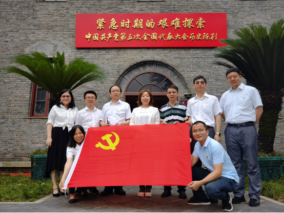 此外,支部党员还走访了中共五大会址、八路军武汉办事处旧址。通过现场学习,深入了解党在武汉组织全国抗日工作的历史事迹,中共五大召开的历史背景、会议产生的深远影响等。在五大会址前,全体党员同志面对党旗,重温入党誓词,重忆入党初心。