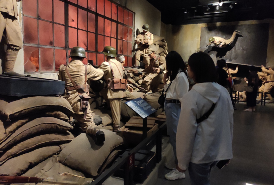 在党这百年来的进程中,抗日战争无疑是这历史画卷中最为浓重的一笔。四行仓库的坚守便是唤醒民族使命感和荣誉感的尖刀之一。纪念馆用“血鏖淞沪”、“坚守四行”、“孤军抗争”、“不朽丰碑”四个部分,为我们展现了中华民族保家卫国、舍生取义的伟大精神,千疮百孔的仓库墙壁像一座倔强的丰碑傲然屹立在吴淞江边,向来往的行人昭示中华民族曾被欺凌但从未屈服的历史。四行仓库是中华民族的从欺凌中站起来反抗的转折点,同时它也为之后的抗日战争提升了士气,激励了中国军民们扛起枪捍卫民族尊严。