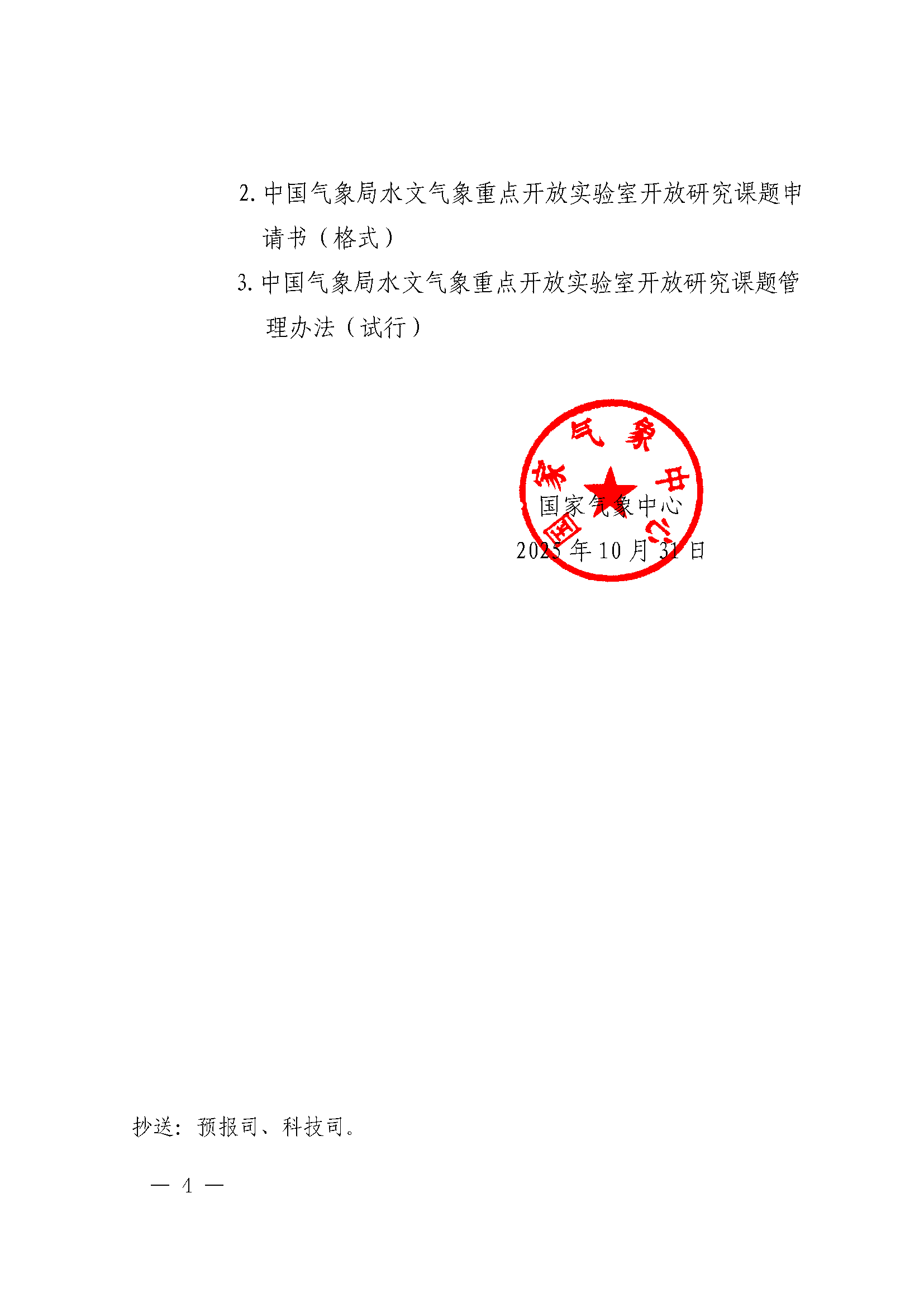 附件1:中国气象局水文气象重点开放实验室2025年度开放研究课题申报指南.docx
