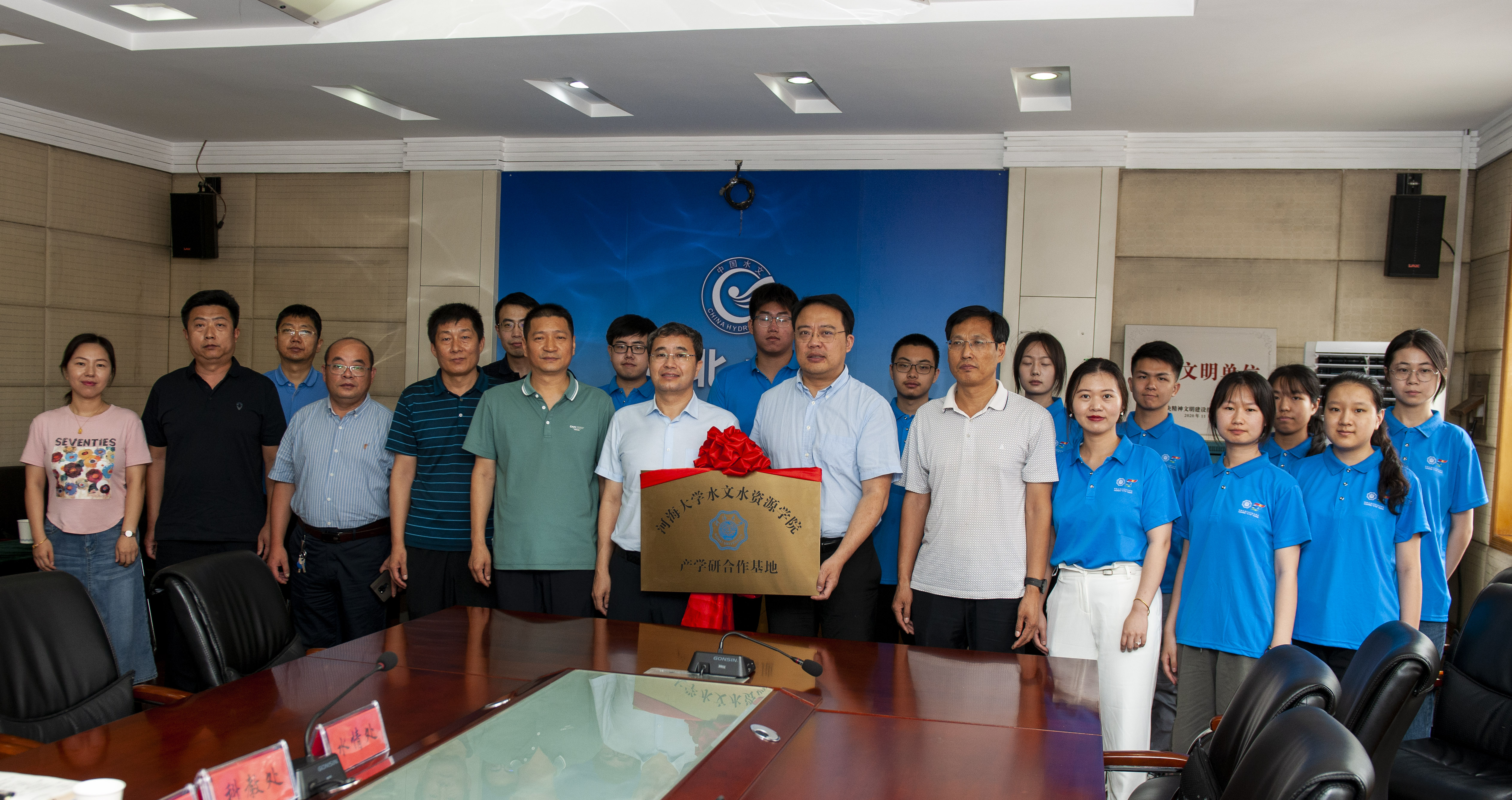 会上双方签署了产学研合作协议,并举行了合作共建“产学研合作基地”揭牌仪式。随后,实践团老师和同学观看了河北省水资源信息管理平台运行情况,听取了河北省地下水压采治理工作开展以来所取得的成效,并到华北水文仪器检测中心、河北水文情报预报中心进行参观。