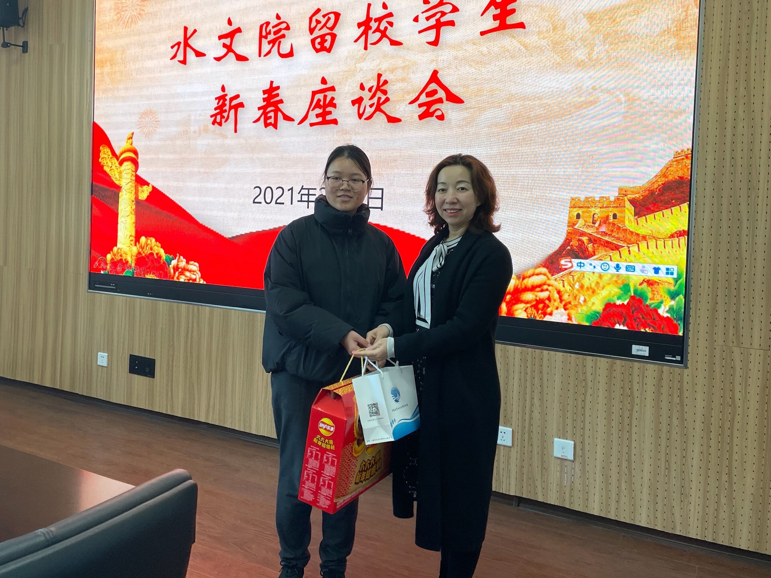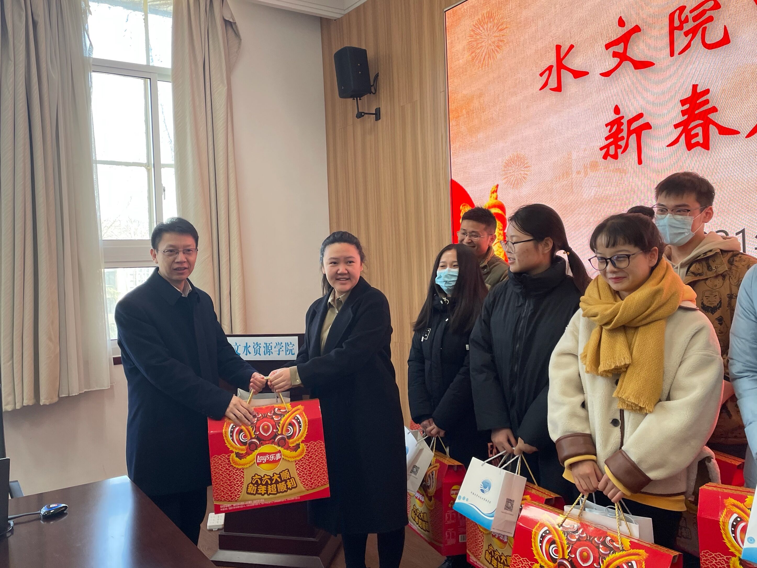 孔书记、杨院长、陈书记等一行首先来到刘光文馆,看望留校过年的博士后李小宁、李文韬。院领导亲切关怀了留宁过春节的老师们的工作环境、生活起居等问题,并送上学院准备的年货礼包,祝福大家过好年、过牛年,牛年人更牛。